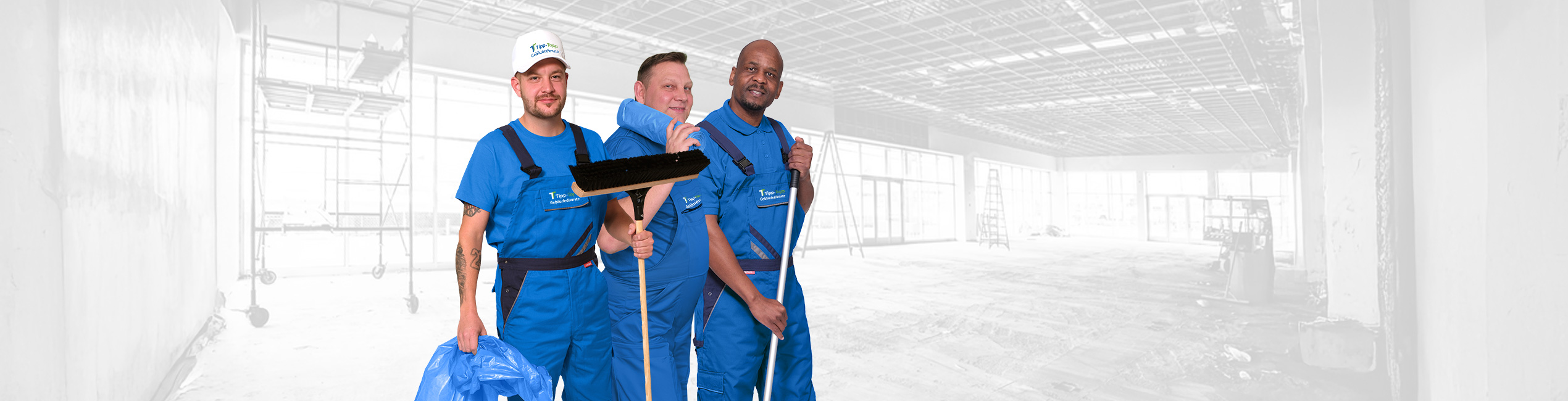 Mit dem Tipp-Topp Verbund buchen Sie professionelle Baureinigung in ganz Deutschland – individuell, flexibel und 100 % zuverlässig. Unsere qualifizierten Reinigungsexperten arbeiten nach höchsten Standards und wissen genau, worauf es bei der Baugrobreinigung, Bauzwischenreinigung oder Bauendreinigung ankommt – von der Entfernung grober Verschmutzungen bis zur staubfreien Übergabe.